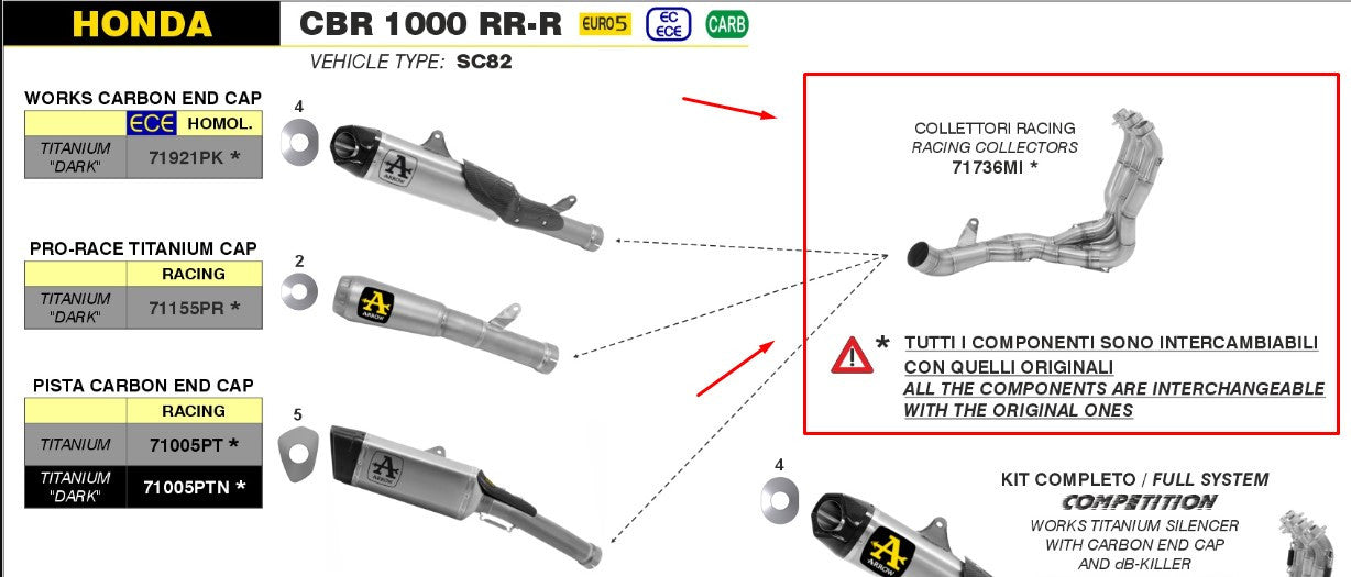 Le Arrow Krümmer 71736mi était spécifiquement pour le Honda CBR 1000 RR-R SC82 (Building Years 2020-2025) a développé et en permet un Augmentation des performances optimisées Et un amélioré Hypothèse de gaz. Ce Collecteur en acier inoxydable Peut être soit avec ça Amortisseurs sonores finaux d'origine ou avec différent Slip-on de la flèche (71921pk, 71155pr, 71005pt, 71005ptn) Combine. À un Performance optimale et longévité Une cartographie spécialement développée est recommandée.