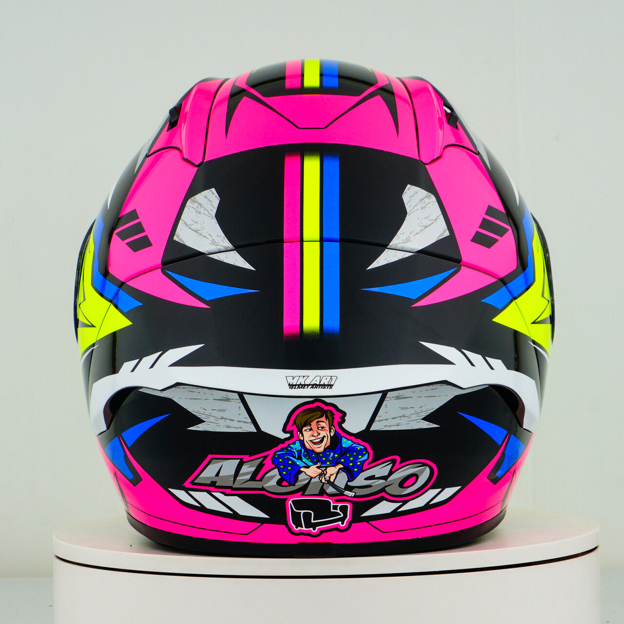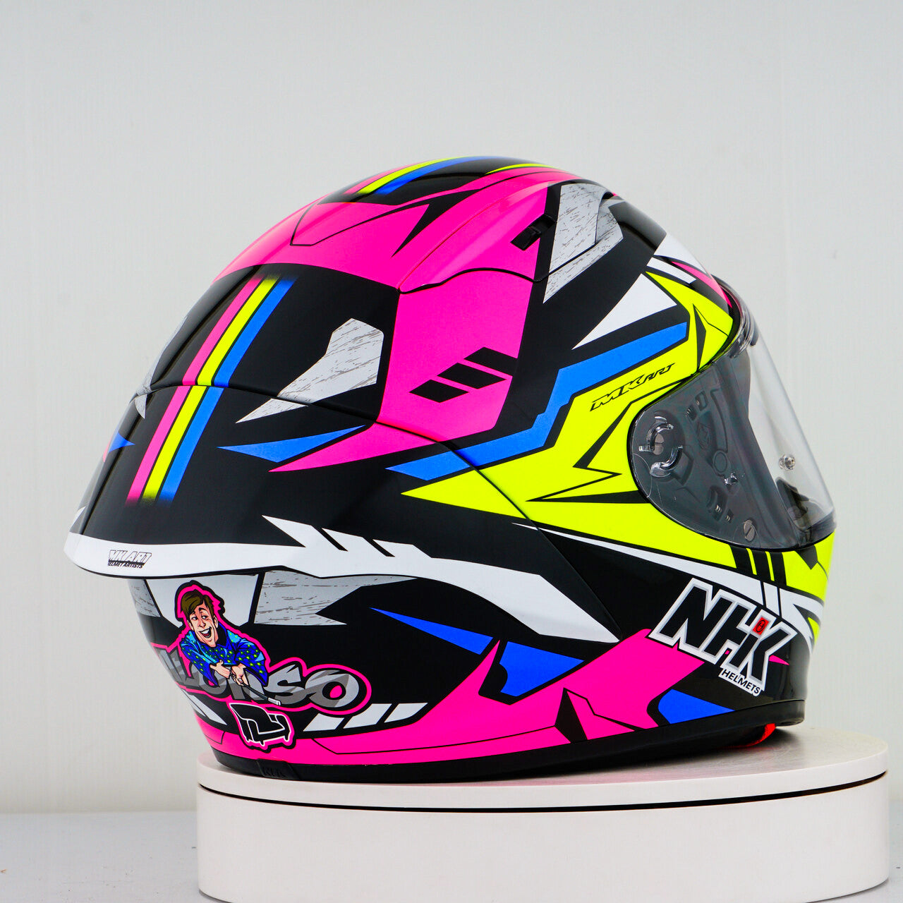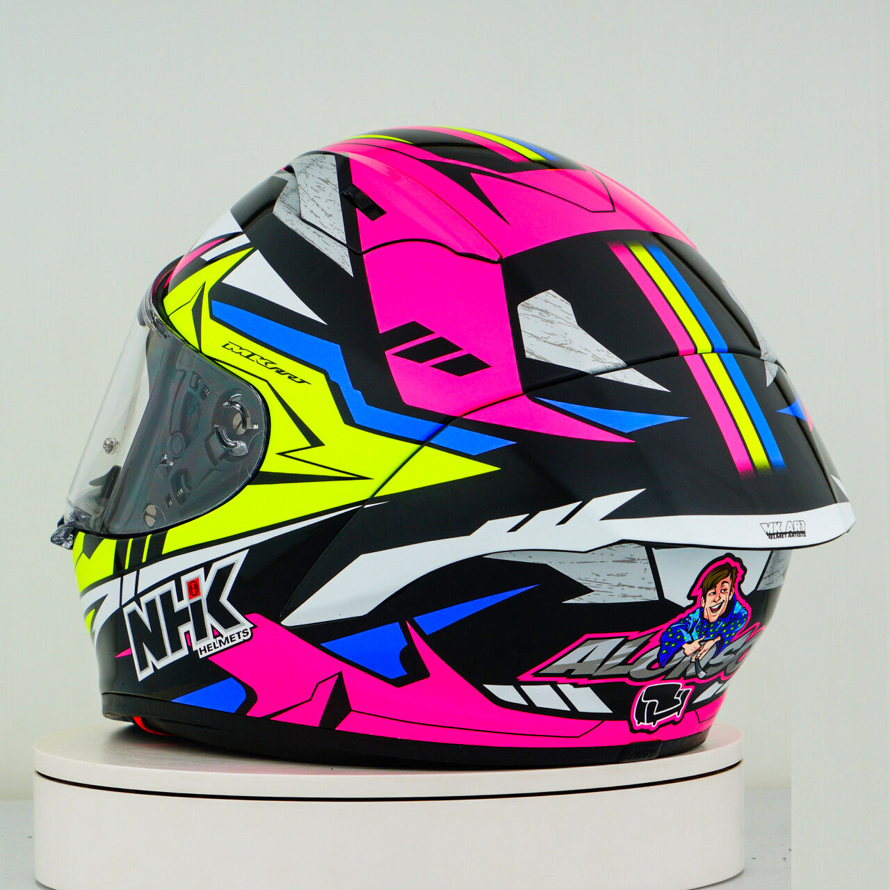 Découvrez le casque de moto ultime avec la course technologique NHK GP-R, qui est FIM et un composite renforcé en fibre de verre avancé (AFRC) en cinq tailles qui garantit un ajustement et une protection parfaits. L'AFRC est un matériau composite qui se compose d'une matrice et de fibres de renforcement. La matrice est généralement un polymère (par exemple la résine époxy), tandis que les fibres de renforcement sont faites de fibres de verre. Avec neuf tailles de coque intérieure et douze tailles de casque, vous trouverez toujours l'ajustement idéal. Notre système de ventilation en air 4D assure une ventilation optimale et un ajustement confortable, tandis que la doublure intérieure de qualité supérieure et confortable offre un confort maximum. Le casque a été testé aérodynamiquement testé dans les classes MotoGP et a une visière plate avec "vue grand angle" pour un champ de vision étendu. La visière de la broche et de la déchirure garantit une vue claire de toutes les conditions. Grâce au système de visière mécanique 100% complet, le changement de la visière est facile et rapide. La doublure intérieure amovible et lavable assure des soins et une hygiène faciles. Le casque est également préparé pour un "sac de chameau" et peut facilement être transporté avec des lunettes. Le système de rétention à double anneau et la joue pour acceptation offrent une sécurité et une stabilité supplémentaires. Le casque a été testé dans la soufflerie pour assurer les meilleures performances à grande vitesse.