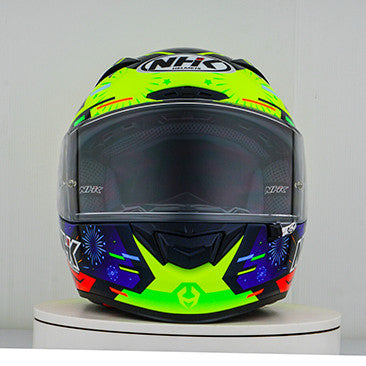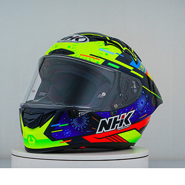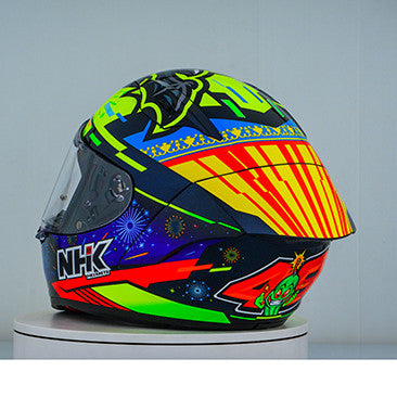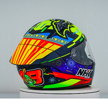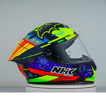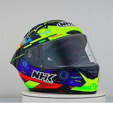 Découvrez le casque de moto ultime avec la course technologique NHK GP-R, qui est FIM et une coque composite composite renforcée en fibre de verre avancée (AFRC) en cinq tailles qui garantit un ajustement et une protection parfaits. L'AFRC est un matériau composite qui se compose d'une matrice et de fibres de renforcement. La matrice est généralement un polymère (par exemple la résine époxy), tandis que les fibres de renforcement sont faites de fibres de verre. Avec neuf tailles de coque intérieure et douze tailles de casque, vous trouverez toujours l'ajustement idéal. Notre système de ventilation en air 4D assure une ventilation optimale et un ajustement confortable, tandis que la doublure intérieure de qualité supérieure et confortable offre un confort maximum. Le casque a été testé aérodynamiquement testé dans les classes MotoGP et a une visière plate avec "vue grand angle" pour un champ de vision étendu. La visière de la broche et de la déchirure garantit une vue claire de toutes les conditions. Grâce au système de visière mécanique 100% complet, le changement de la visière est facile et rapide. La doublure intérieure amovible et lavable assure des soins et une hygiène faciles. Le casque est également préparé pour un "sac de chameau" et peut facilement être transporté avec des lunettes. Le système de rétention à double anneau et la joue pour acceptation offrent une sécurité et une stabilité supplémentaires. Le casque a été testé dans la soufflerie pour assurer les meilleures performances à grande vitesse.