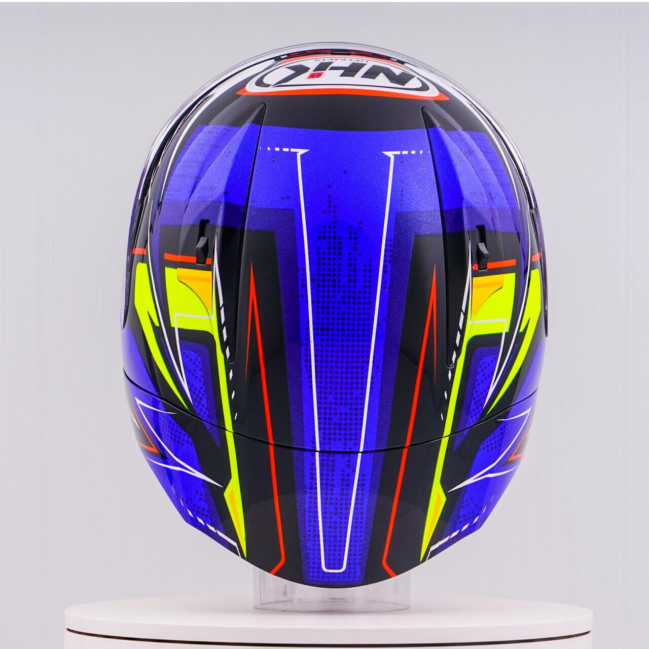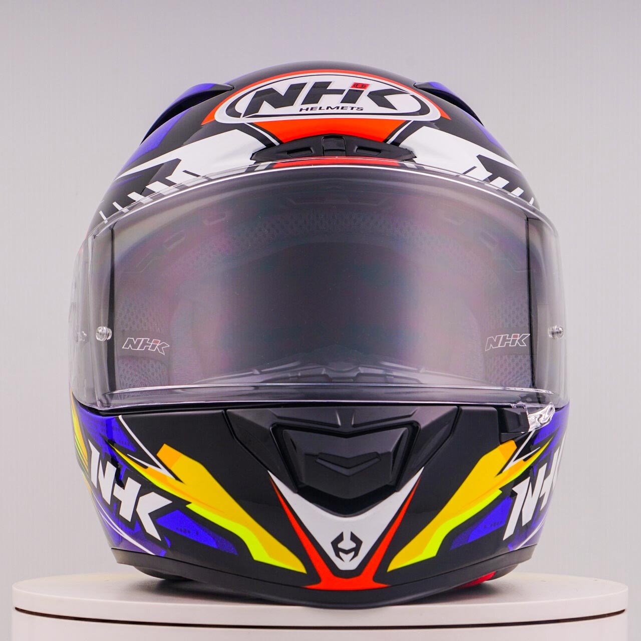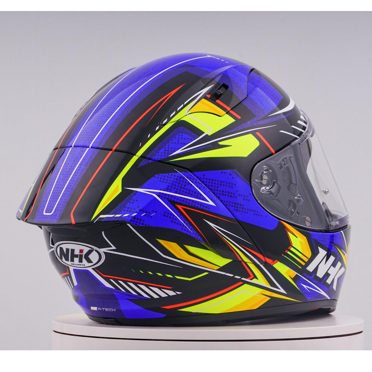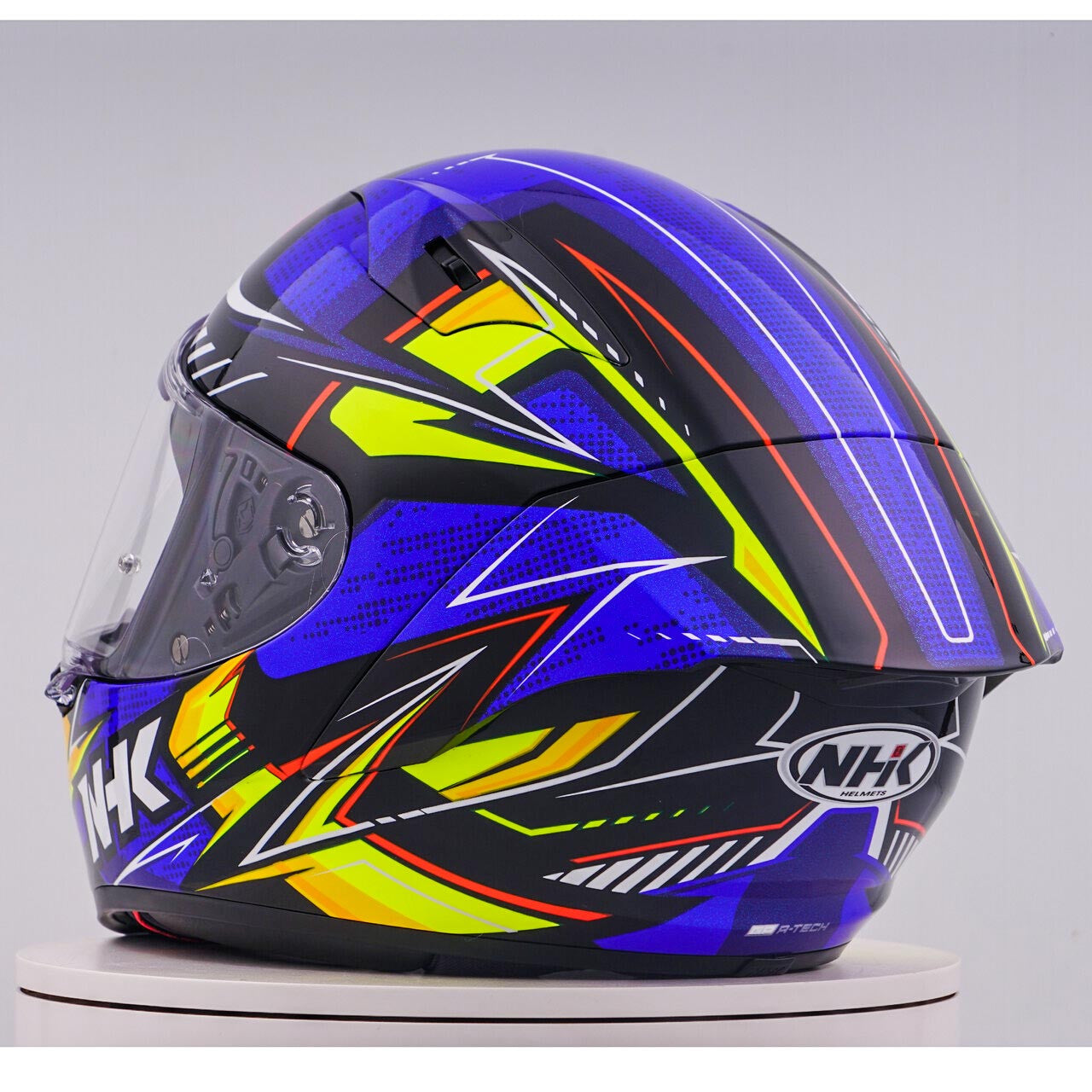 Découvrez le casque de moto ultime avec la course technologique NHK GP-R, qui est FIM et une coque composite composite renforcée en fibre de verre avancée (AFRC) en cinq tailles qui garantit un ajustement et une protection parfaits. L'AFRC est un matériau composite qui se compose d'une matrice et de fibres de renforcement. La matrice est généralement un polymère (par exemple la résine époxy), tandis que les fibres de renforcement sont faites de fibres de verre. Avec neuf tailles de coque intérieure et douze tailles de casque, vous trouverez toujours l'ajustement idéal. Notre système de ventilation en air 4D assure une ventilation optimale et un ajustement confortable, tandis que la doublure intérieure de qualité supérieure et confortable offre un confort maximum. Le casque a été testé aérodynamiquement testé dans les classes MotoGP et a une visière plate avec "vue grand angle" pour un champ de vision étendu. La visière de la broche et de la déchirure garantit une vue claire de toutes les conditions. Grâce au système de visière mécanique 100% complet, le changement de la visière est facile et rapide. La doublure intérieure amovible et lavable assure des soins et une hygiène faciles. Le casque est également préparé pour un "sac de chameau" et peut facilement être transporté avec des lunettes. Le système de rétention à double anneau et la joue pour acceptation offrent une sécurité et une stabilité supplémentaires. Le casque a été testé dans la soufflerie pour assurer les meilleures performances à grande vitesse.