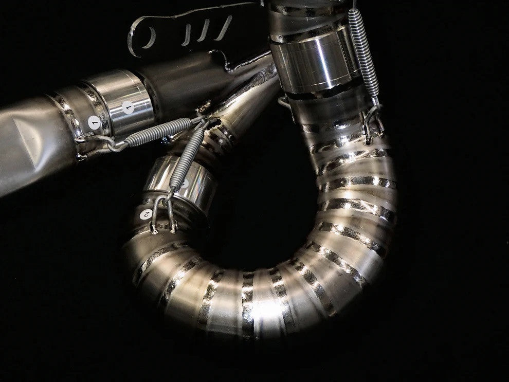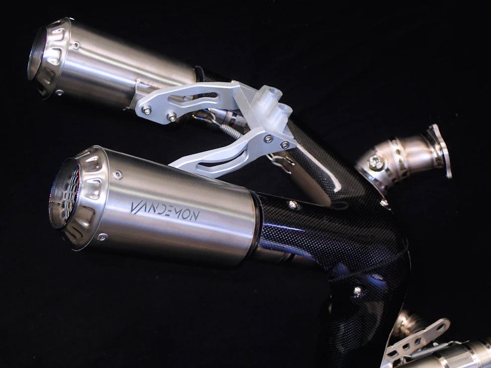 Le Système d'échappement en titane Vandemon élevé pour Ducati Panigale V2 955 (2020-2024) est le choix parfait pour les conducteurs qui recherchent un maximum Performance et performance sont. Ce Système complet a été spécialement développé pour une utilisation sur le circuit et en offre un clair Augmentation des performances de jusqu'à +8 ps Après le vote individuel. En utilisant Tit titane et retirer la norme lourde Échappement en acier à faible montage et Catalyseur Volonté Poids total sur seulement 5,6 kg réduit ce que non seulement Manutention et le Agilité amélioré, mais aussi le Développement de la chaleur Réduit, qui est souvent généré par des systèmes d'échappement standard.